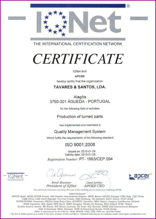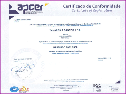 Tavares & Santos, Ltd., in a process of continuous improvement, has adopted a policy of Quality that is customer satisfaction (price, time and quality) through the domain of the process and involvement of employees in the company's goals.